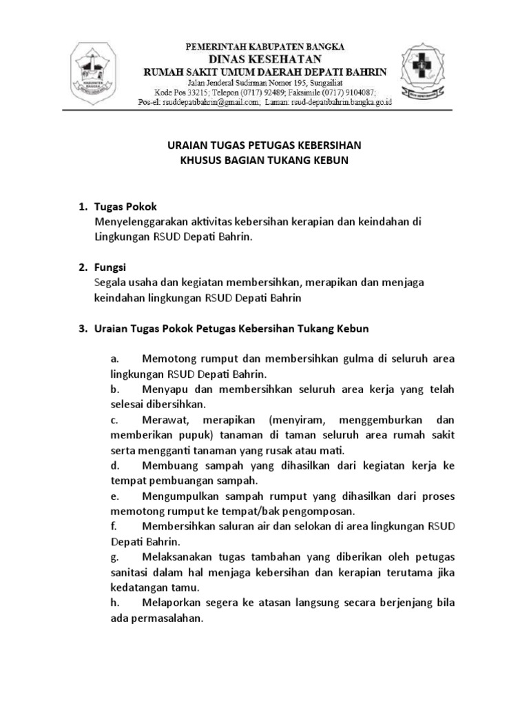 Uraian Tugas Petugas Kebersihan Tukang Kebun Pdf
